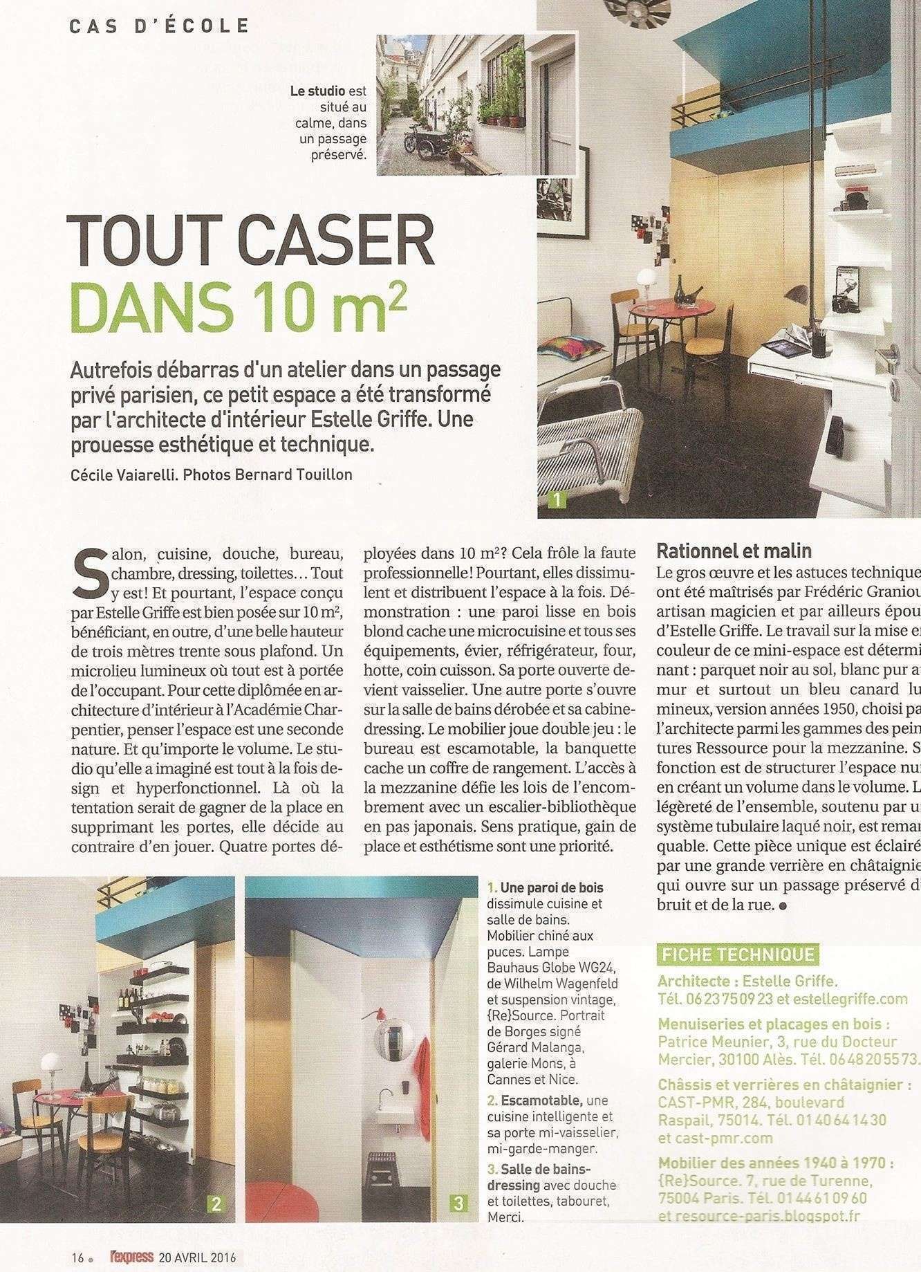 Estelle Griffe, diplômée en 2013 a fait des petits espaces son terrain de jeu ! Pour elle, c’est toujours un challenge de pourvoir concilier espaces à vivre et surfaces restreintes. Mission impossible ? Pas pour Estelle, la preuve avec quelques exemples parus dans l’Express en 2016 et plus récemment dans Côté Paris en septembre 2017.